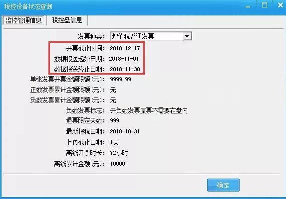 打开【报税处理】-【状态查询】-【监控管理信息】,查看开票截止日期,更新至12月17日。本月开票即可无忧!